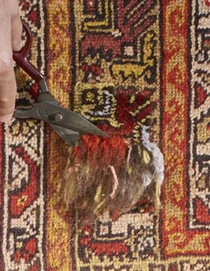 – réparation ou retissage des franges,